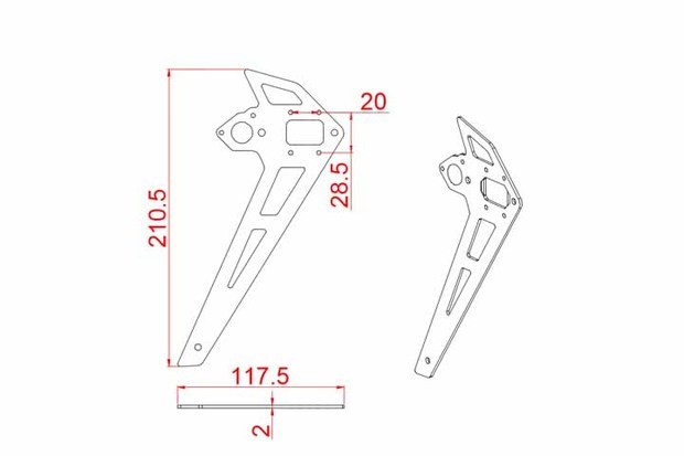 适用于妙 550/600级别直升机,采用厚度2mm的碳纤维板材CNC精密加工。双色炫丽醒目色彩,在空中能达到很好的辨识度,精密加工。