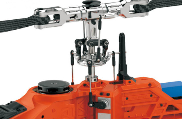 适用于妙 550/600机型,采用6061-T6铝合金材质 ,高精度四轴车铣复合3D一体成型加工,具有高精密度结构强度。满足严苛的飞行承重要求,有效提升飞行稳定度和操控性能。十字盘采用无虚位结构的专利设计,独立的固定方式,这个专利设计能减少装配游隙,只剩轴承本身的虚位晃动。使用这种结构能非常方便的维修、拆装、保养十字盘。 采用日本NSK鱼眼轴承 ,所有球头螺纹增大至3.0mm,避免原先M2球头容易打滑和易损的问题,以适应目前大型机对十字盘的负载要求。