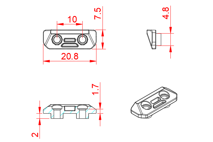单斜角舵机塑料垫片×4(20.8×7.5×5.5mm) 0.65g