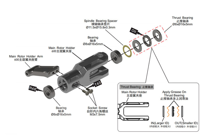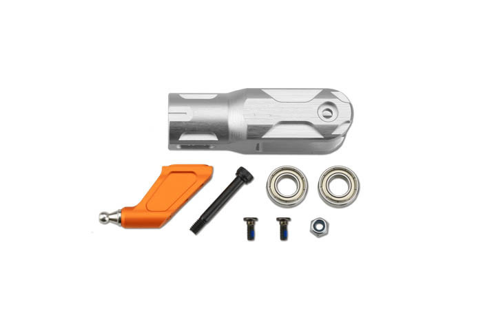 采用7075-T65超硬铝合金全CNC一体成型加工,适用于妙 600直升机,采用分体式夹座臂,改装了止推轴承中置,间接的延伸了轴承的侧摆力臂,减少虚位摆动。能承受更强的拉力,以适应目前主流机型对大动力的要求。