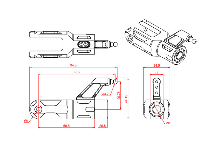 主旋翼夹座臂×1(35×25×8mm)7.3G