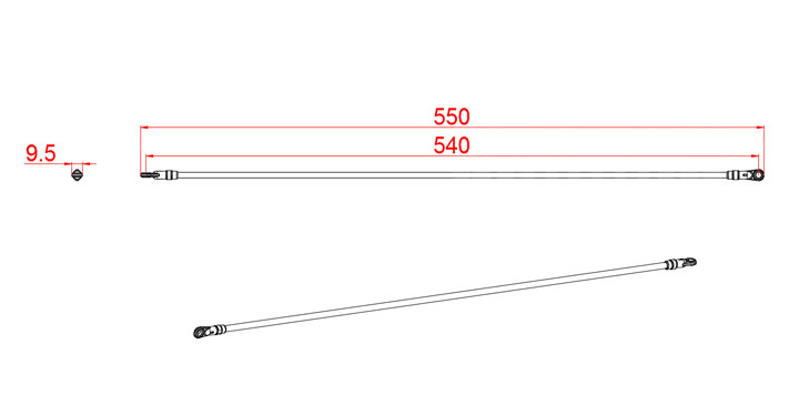 适用于妙 600直升机机型,采用5mm直径空心碳纤维管精磨加工。安装时注意球头扣平面向上。
