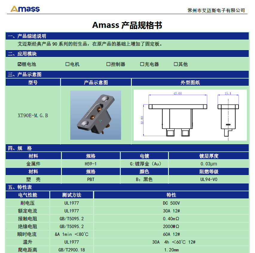 - 型号: XT90E-M(公)