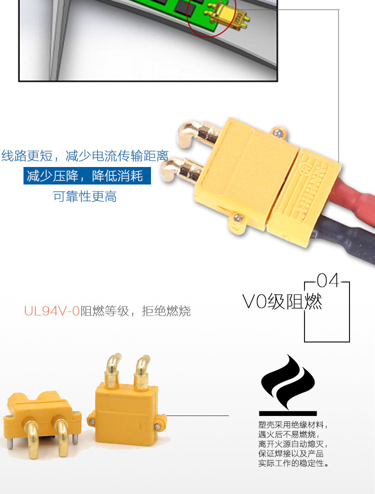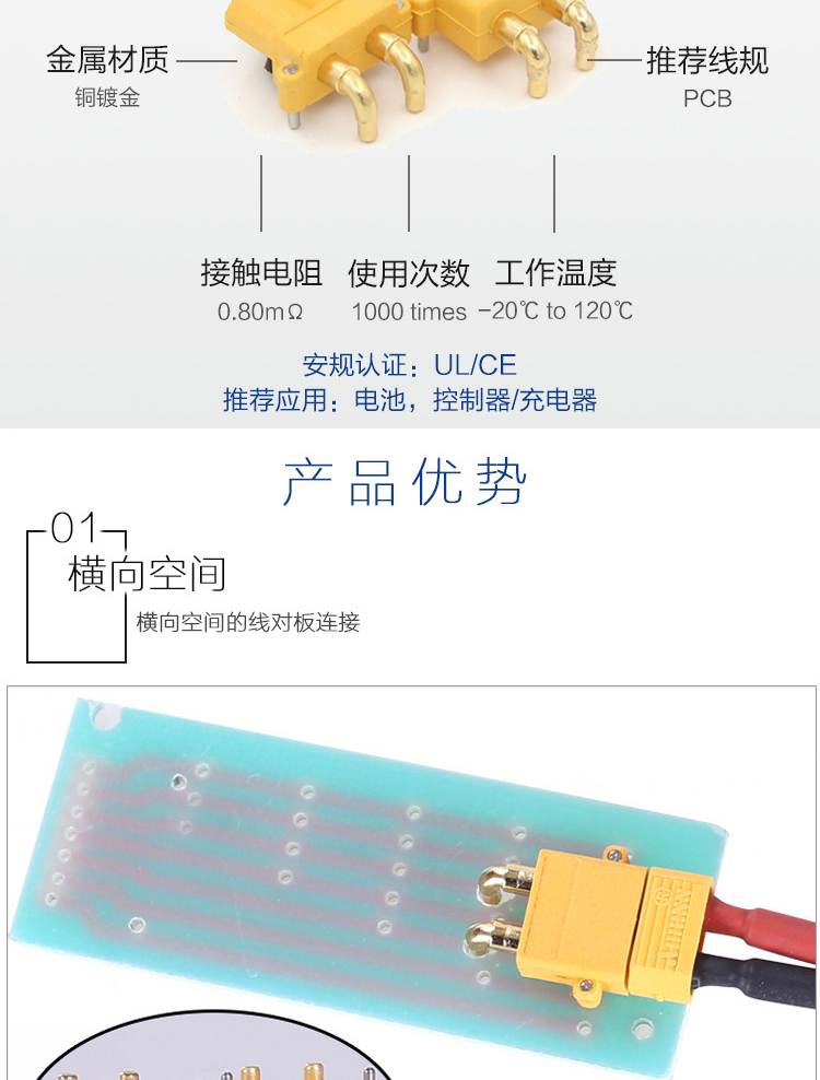 Amass XT30PW PCB板专用2芯卧式连接器插头