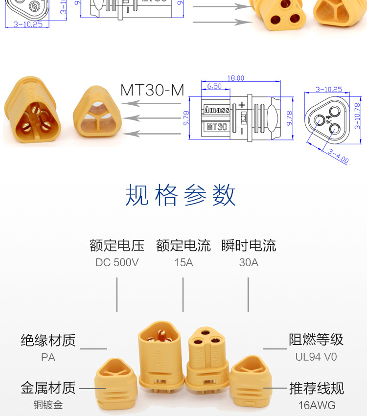 这是最经典的MT30三孔插头,具有高性价比。