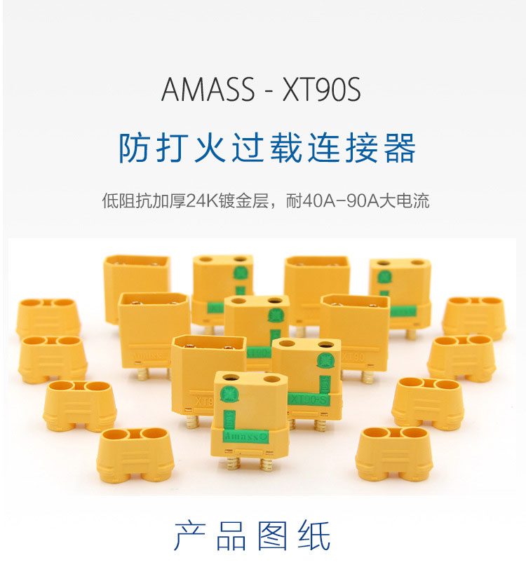 这是Amass公司最新出品的 XT90S 升级版防打火插头,在这么小的体积下具有防打火功能。