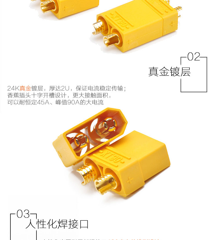 Amass XT90PW卧式连接器电路板4.5mm镀金插头