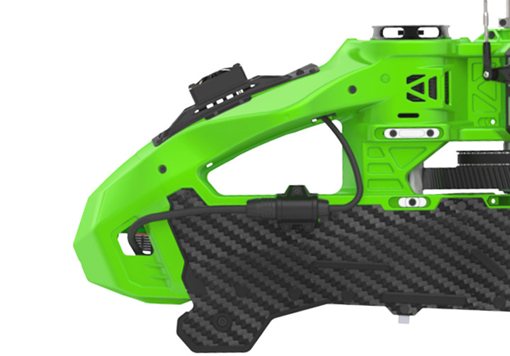 侧板采用塑胶材料和碳纤维一体注塑,整体流线型设计,多处榫卯造型设计,在不增加重量的情况下,有效提升结构强度。