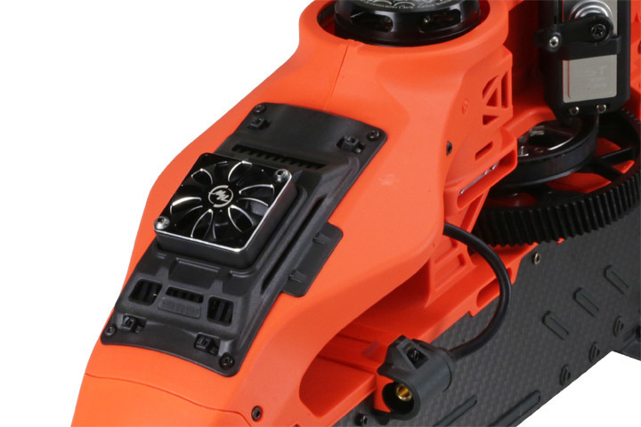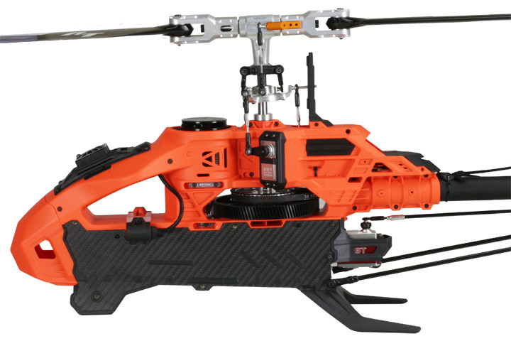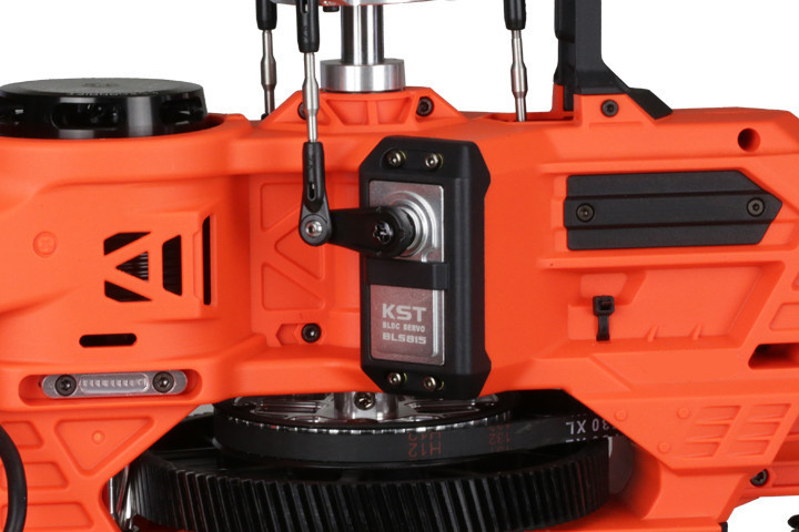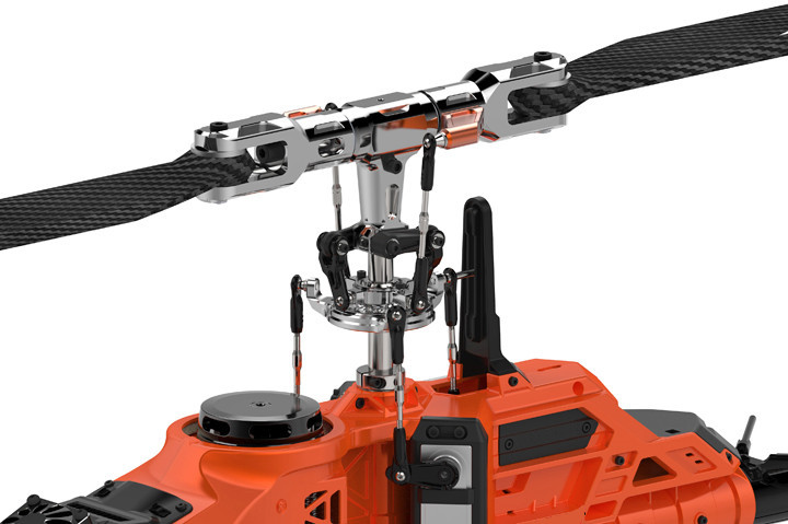 主旋翼固定座采用7075-T65超硬铝合金全CNC一体成型加工。采用分体式夹座臂,改装了止推轴承中置,间接的延伸了轴承的侧摆力臂,减少虚位摆动。能承受更强的拉力,以适应目前主流机型对大动力的要求。
